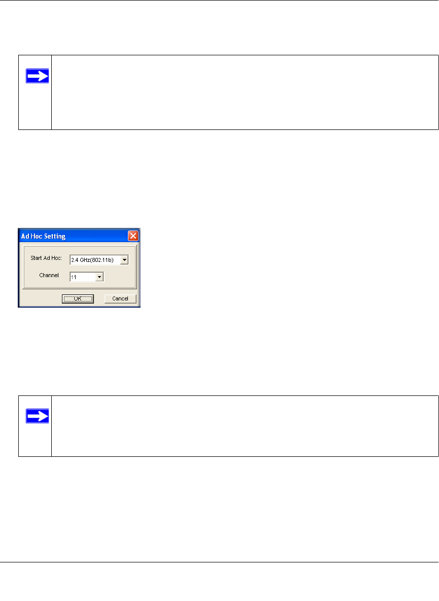 4. In the Start Ad Hoc field, choose the wireless standard (802.11b, or 802.11g) for your Ad Hoc