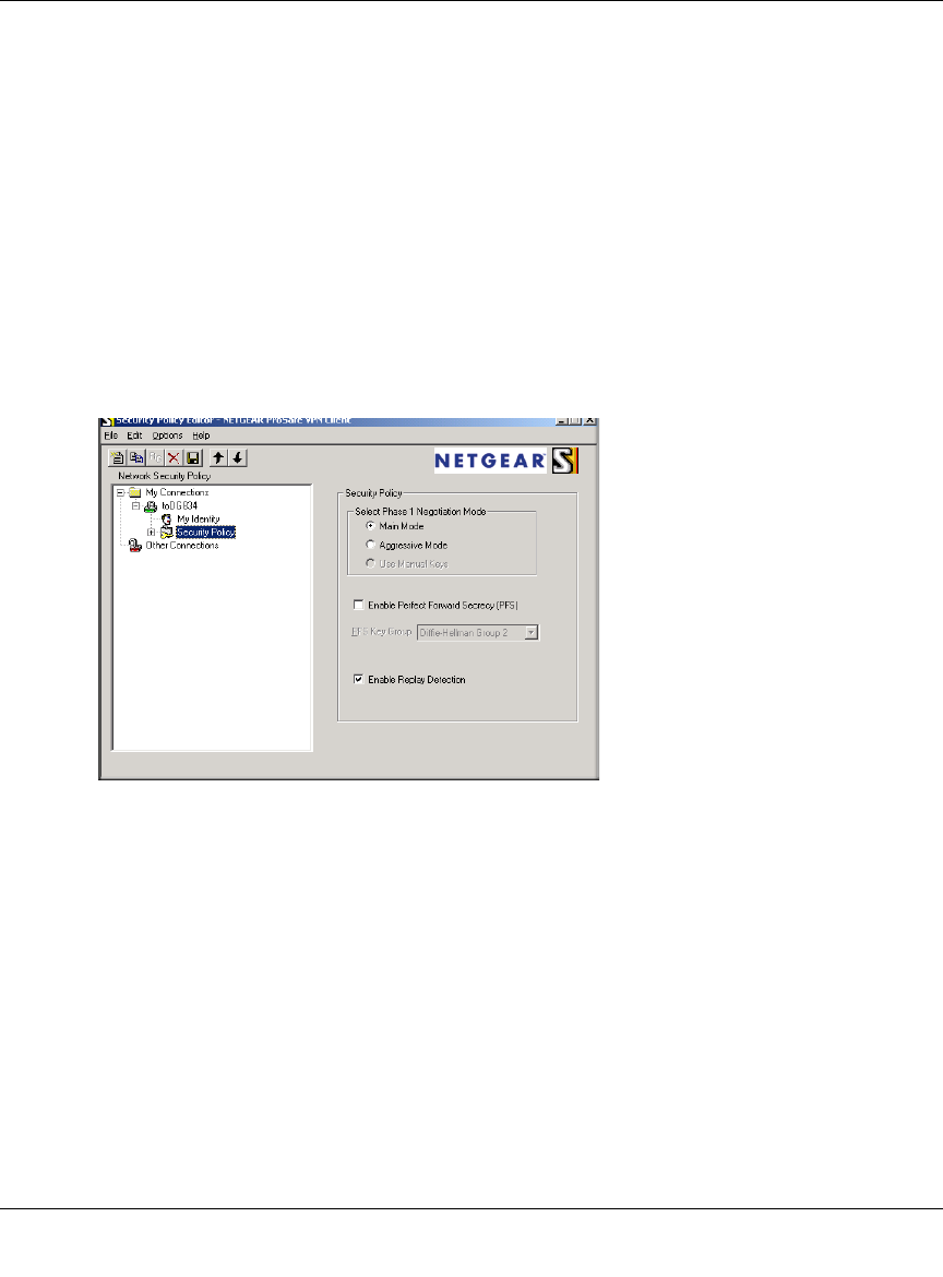 3. Configure the Security Policy in the NETGEAR ProSafe VPN Client software:
