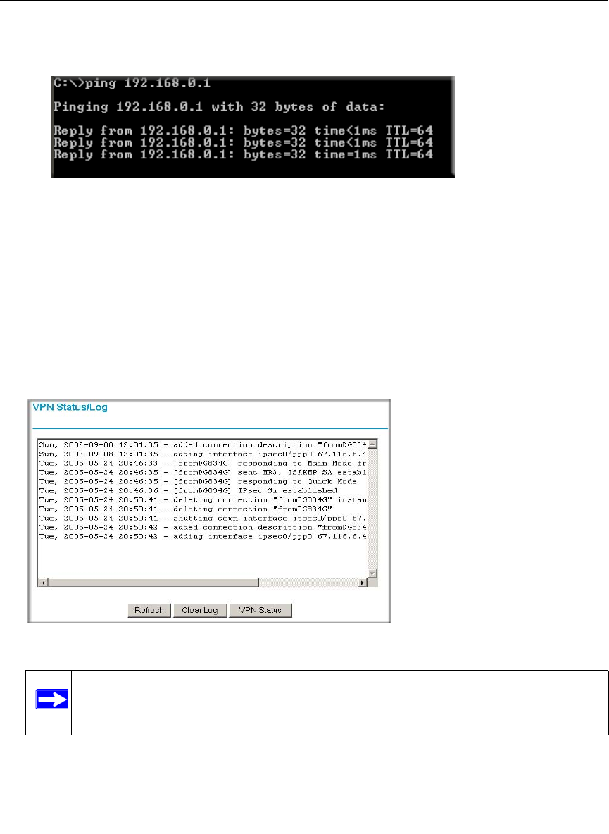 NETGEAR ProSafe VPN Client, then Log Viewer. The Log Viewer screen for a successful