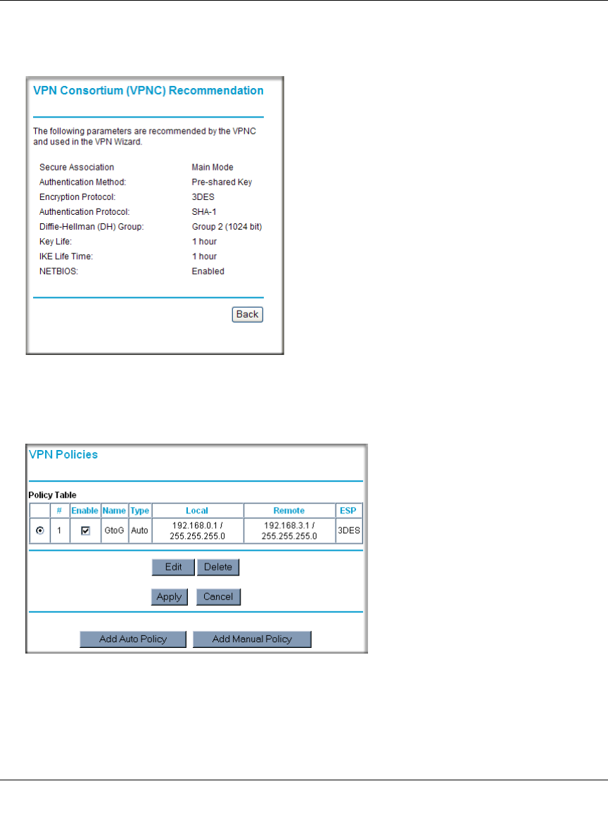 To view the VPNC recommended authentication and encryption settings used by the VPN