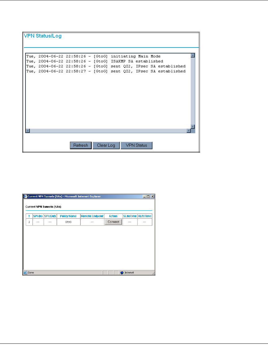 c. Look at the VPN Status/Log screen (Figure 8-27) to verify that the tunnel is connected.