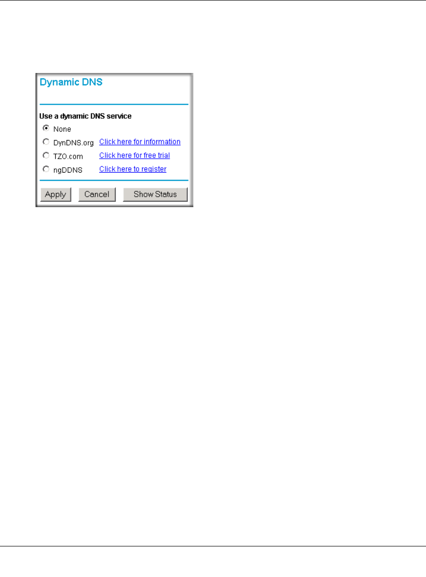 a. Browse to the Dynamic DNS Setup Screen (see Figure B-8) in the Advanced menu.