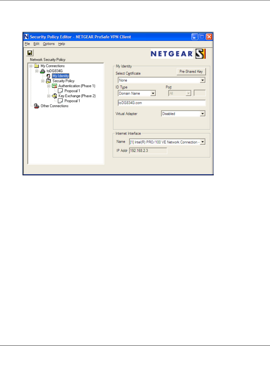 c. Select Domain Name in the ID Type menu and enter toDG834G.com (in this example) in