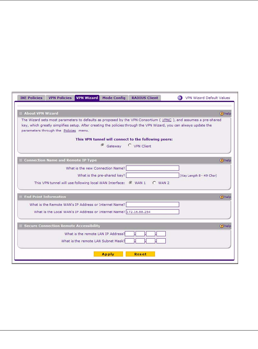 2. Click the VPN Wizard tab and the VPN Wizard screen displays.