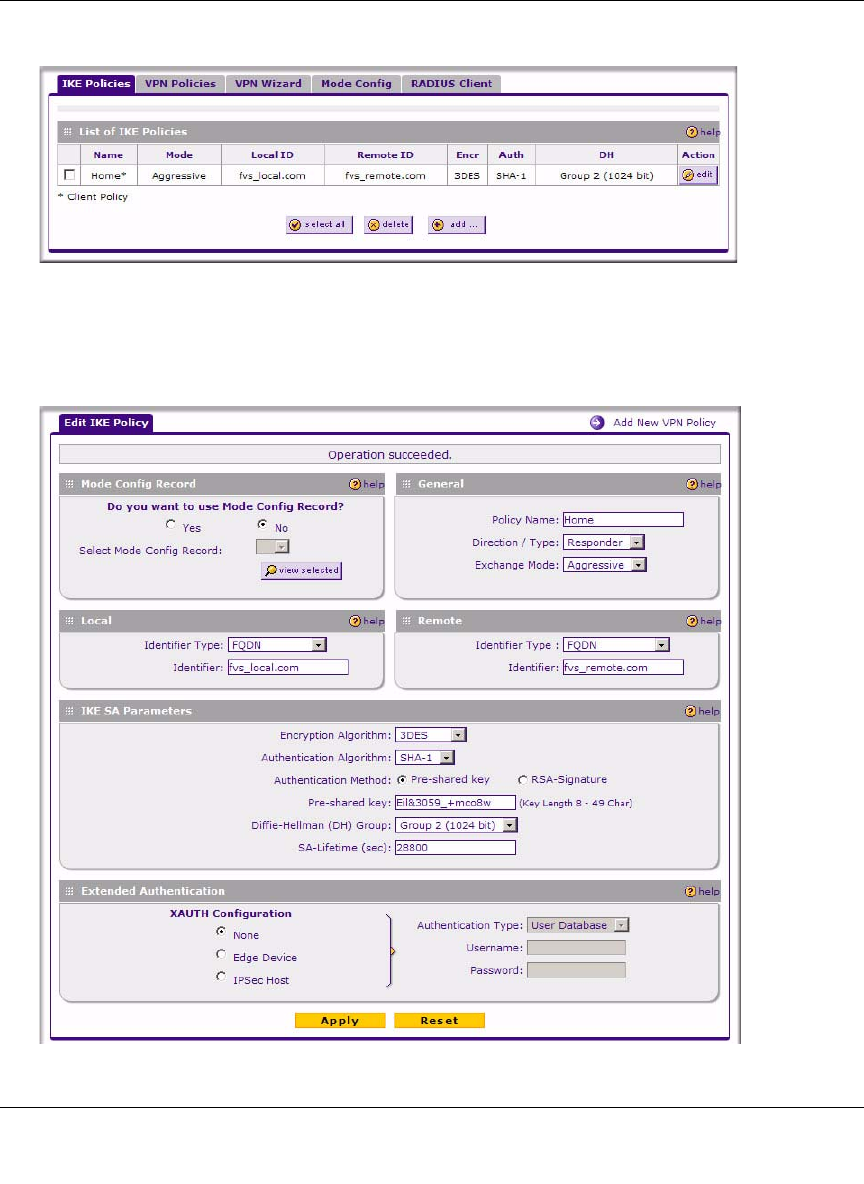 3. To see the detailed settings of the IKE Policy, click the Edit button next to the policy. The Edit