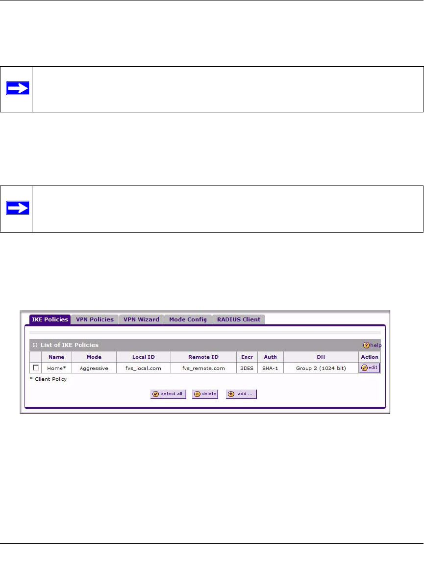 2. Click the IKE Policies tab and the IKE Policies screen displays.