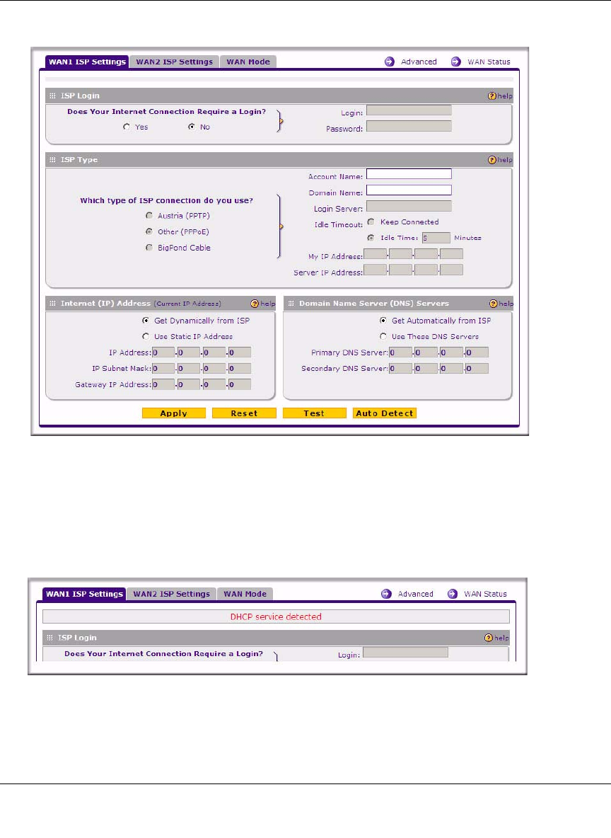 Auto Detect will probe the WAN port for a range of connection methods and suggest one that