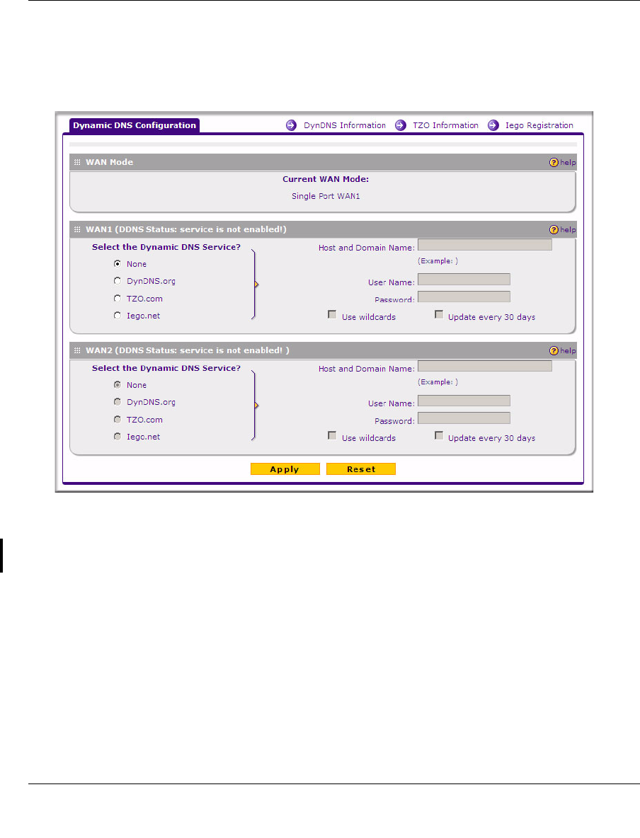 The fields corresponding to the selection you have chosen will be activated. Each DDNS