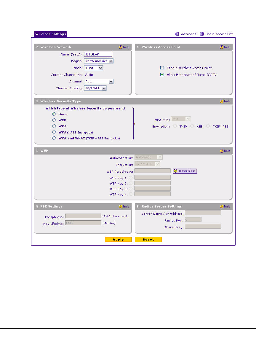 The default Wireless Settings screen displays as shown in Figure 4-6. Use this screen to setup