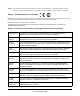 RangeMax Dual Band Wireless-N Modem Router DGND3300 User Manual Table A-1. Specifications (continued) Environmental Operating temperature 0° to 40° C (32º to 104º F) Operating humidity 10% to 90% relative humidity, noncondensing Storage temperature -20° to 70° C (-4º to 158º F) Regulatory Compliance Meets requirements of FCC Part 15 Class B; VCCI Class B; EN 55 022 (CISPR 22), Class B Interface Specifications A-4 LAN 10BASE-T or 100BASE-Tx, RJ-45 WAN (ADSL) ITU 992.1 (G.dmt) Annex A, ITU 992.
