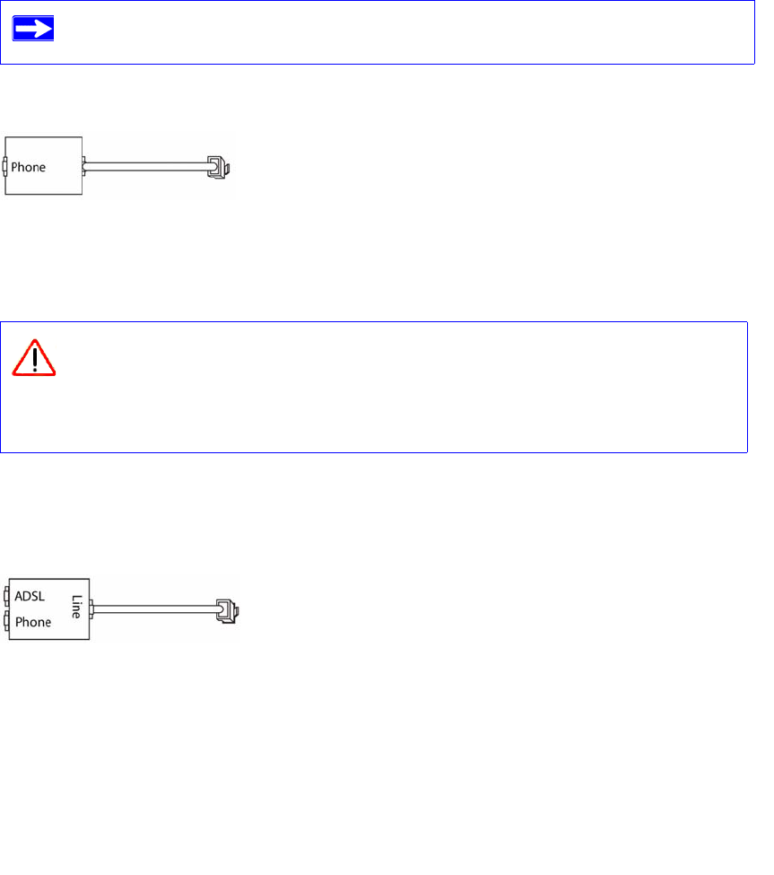 Use an ADSL microfilter with built-in splitter when there is a single wall outlet which must