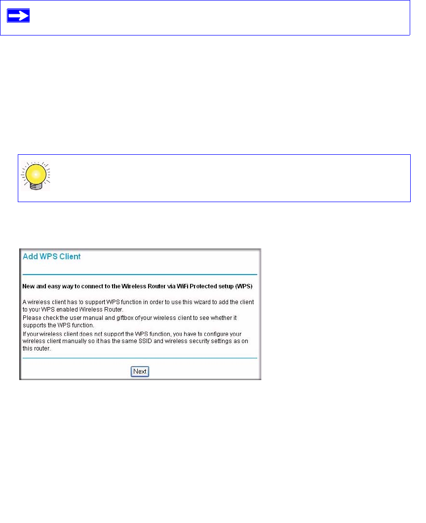 the router are clients). The Add WPS Client wizard screen displays. Click Next.