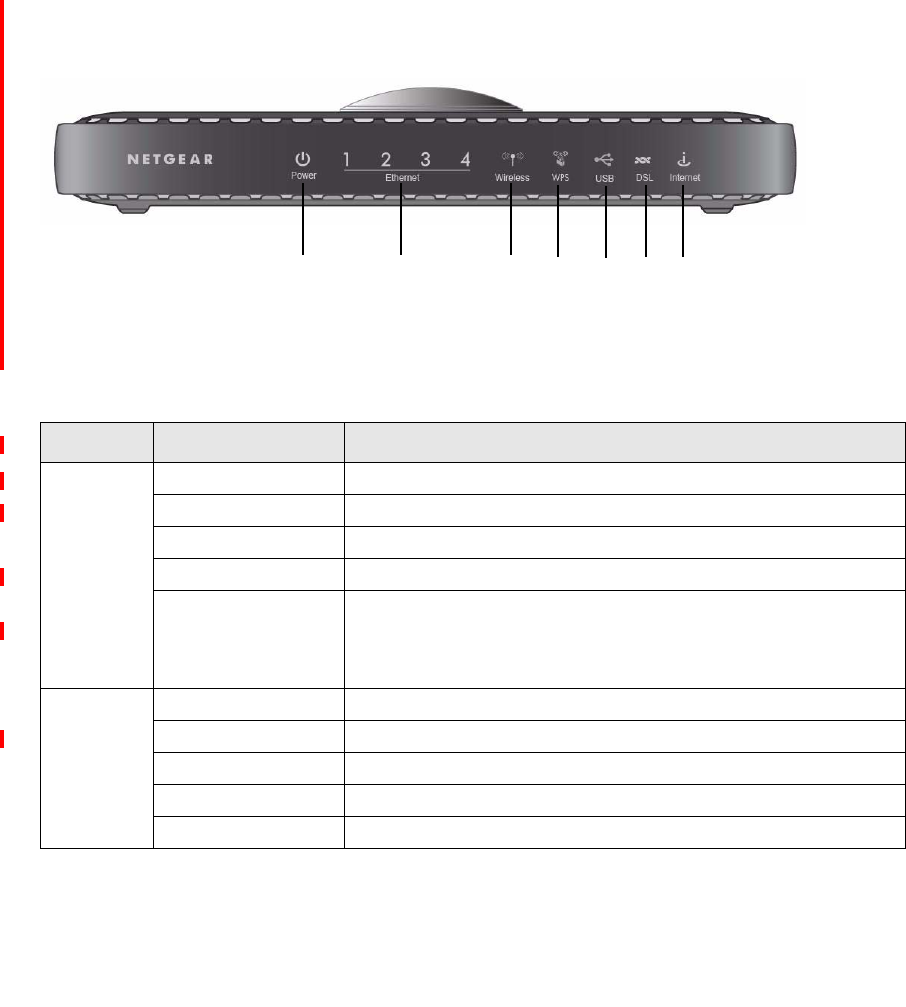 The wireless-N modem router front panel shown below contains status LEDs.