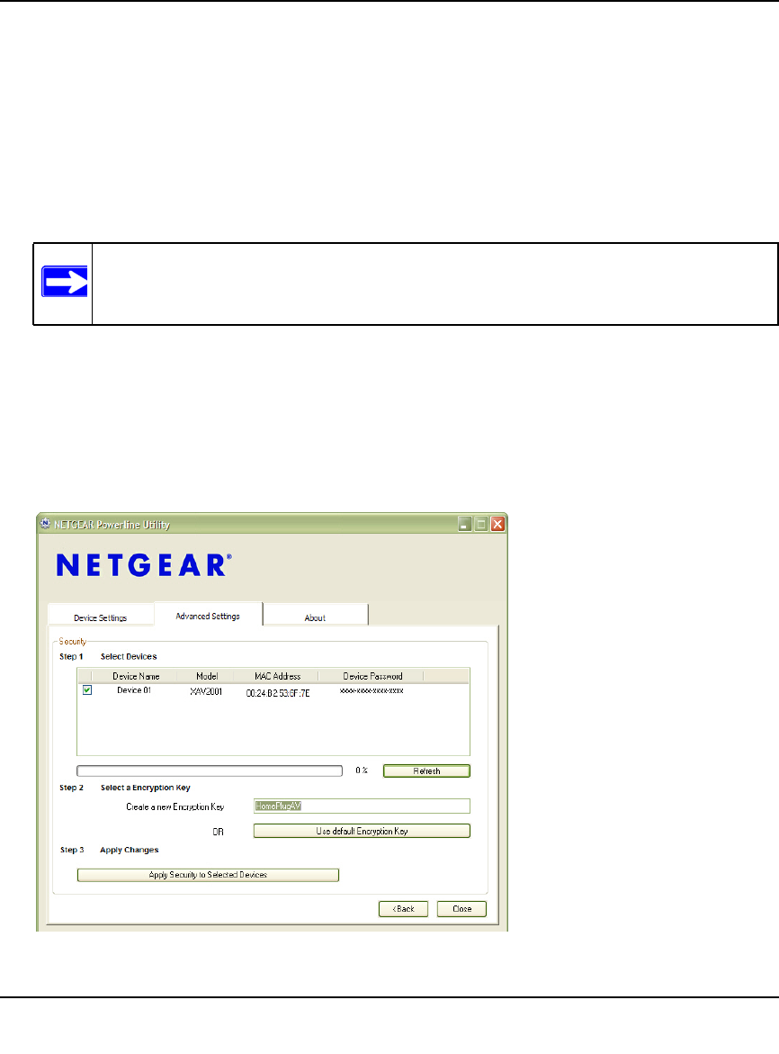 You will see the default encryption key, HomePlugAV, display in the encryption field.
