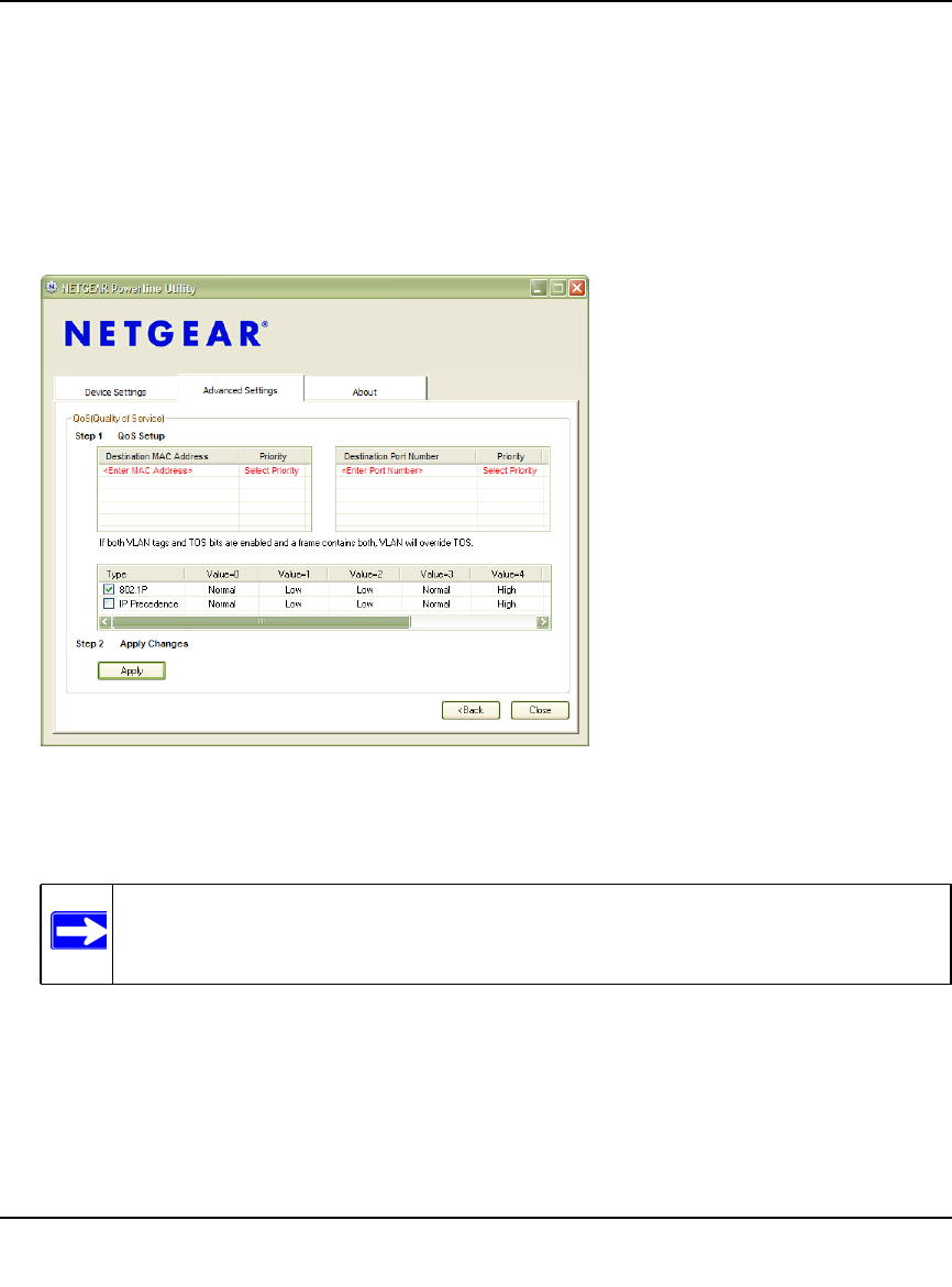 Note: QoS settings are applied only to the device that is selected on the QoS tab.