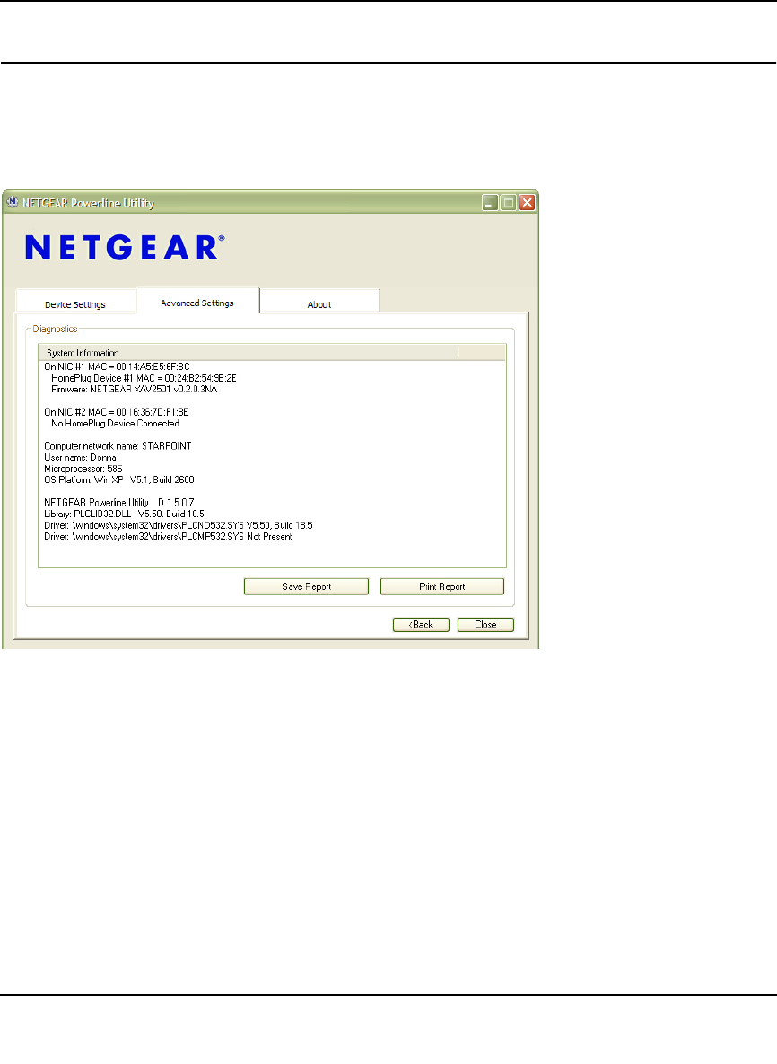 From the Advanced Settings tab on the Powerline Utility, the Diagnostics link helps you diagnose