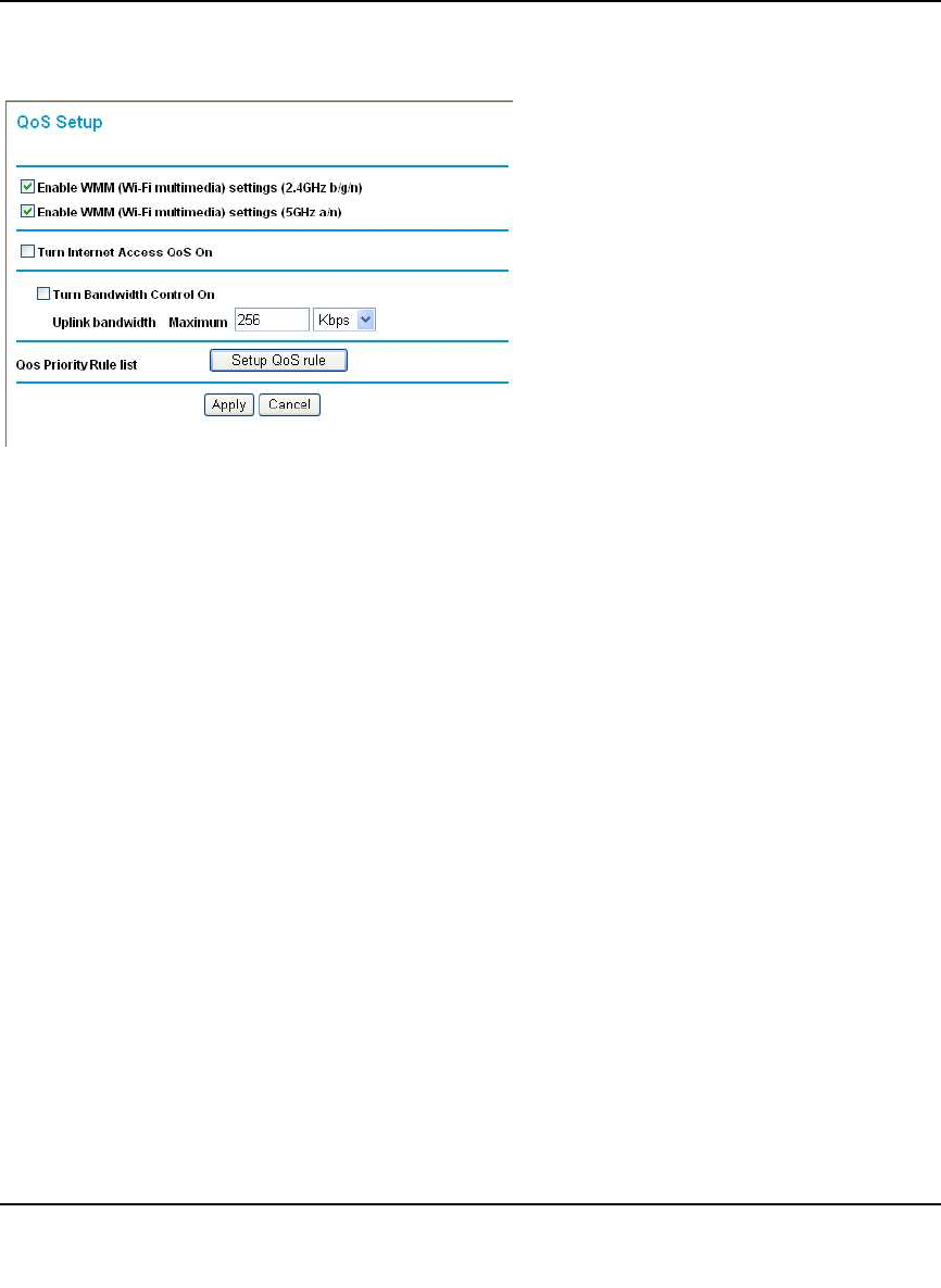 The WNR2000v3 router supports Wi-Fi Multimedia Quality of Service (WMM QoS) to prioritize