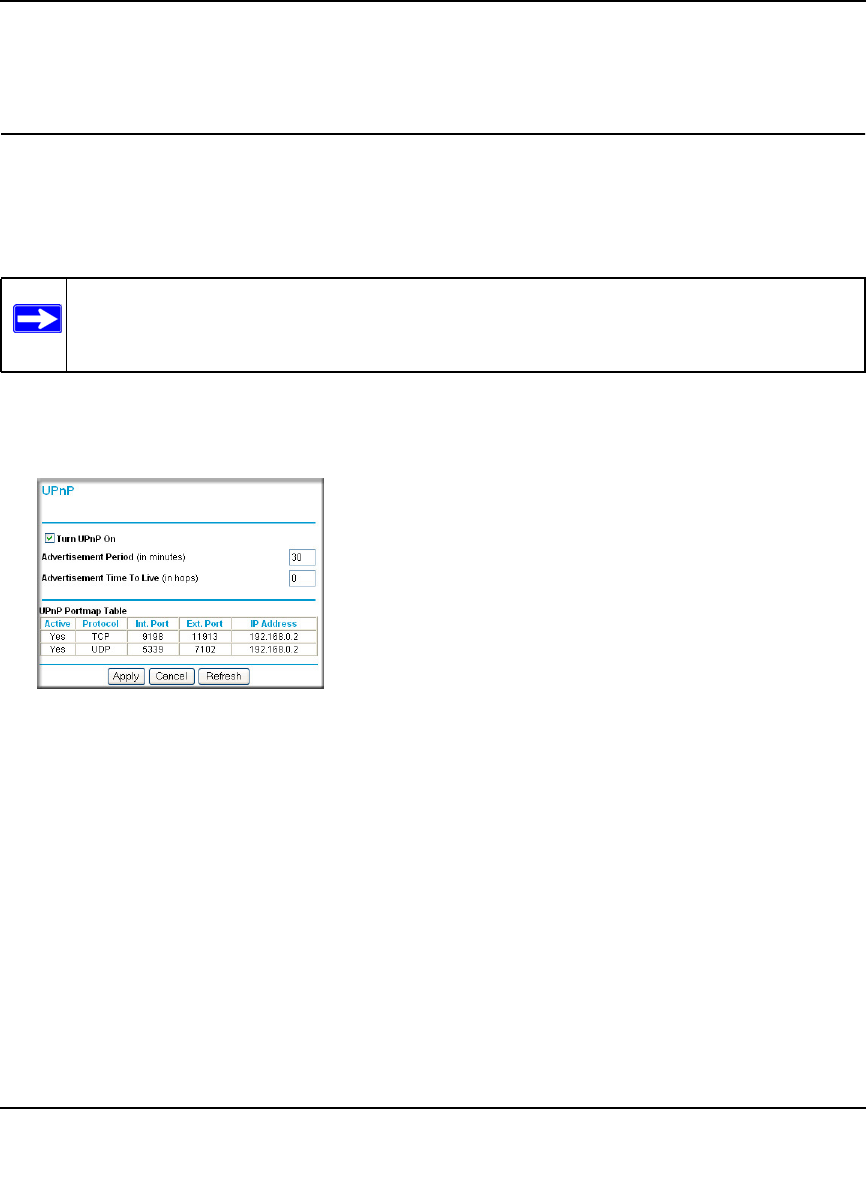 1. From the main menu, under Advanced, click UPnP. The UPnP screen displays.