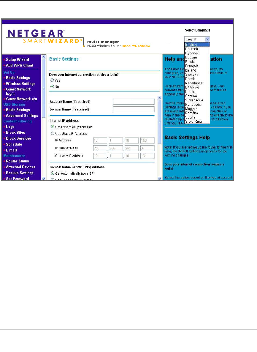 memory, the language is downloaded from the NETGEAR server and stored in the current