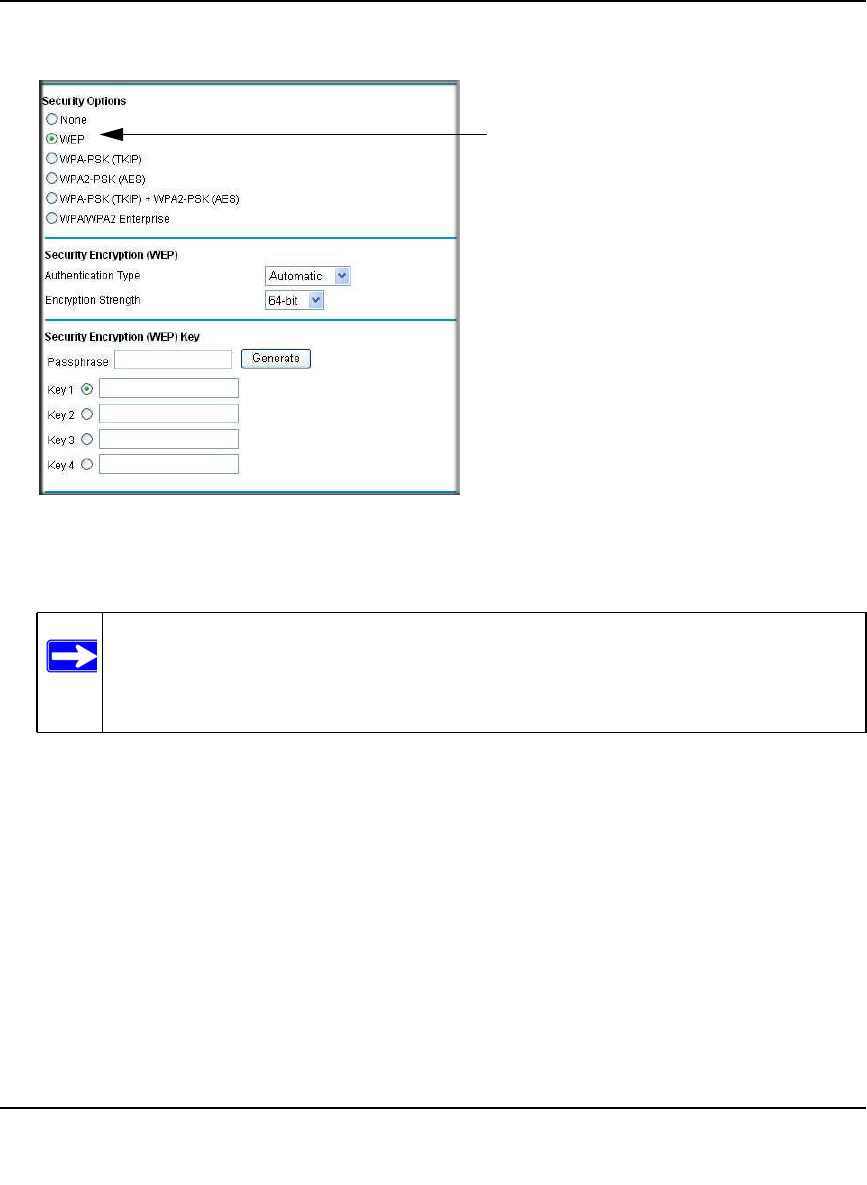 3. Set the Security Options by selecting the WEP radio button in the Security Options section: