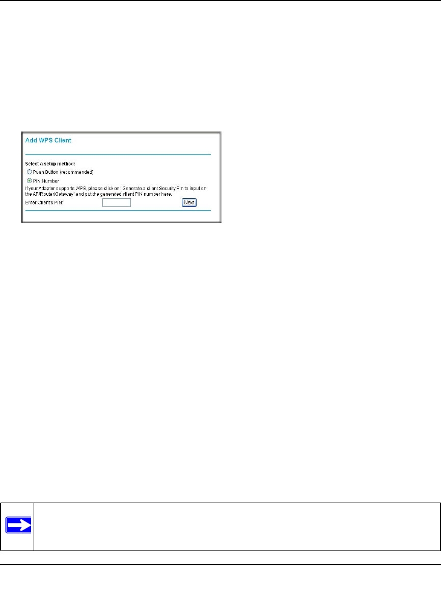 wirelessly to the wireless router are clients), and then click Next. The Add WPS Client screen