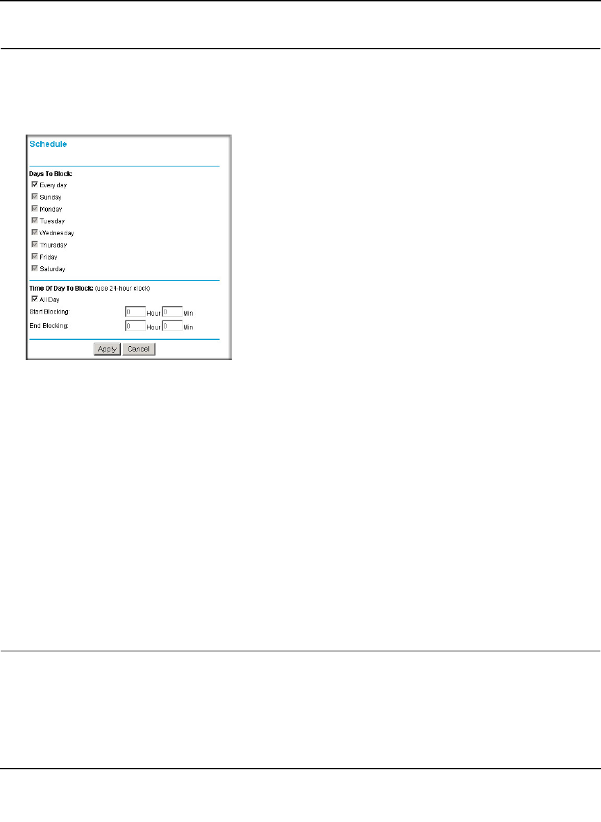 1. Select Schedule under Content Filtering in the main menu. The Schedule screen displays.