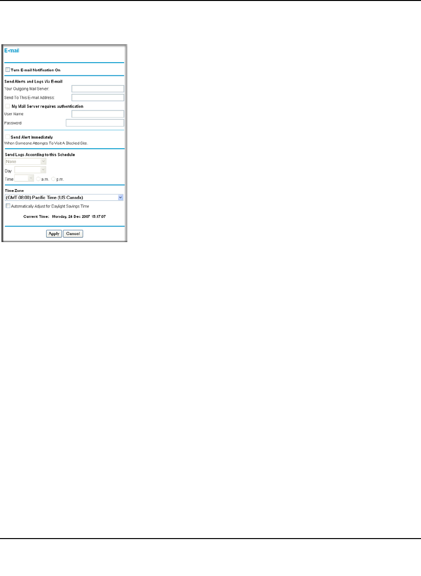 1. Select E-mail under Content Filtering in the main menu. The E-mail screen displays.