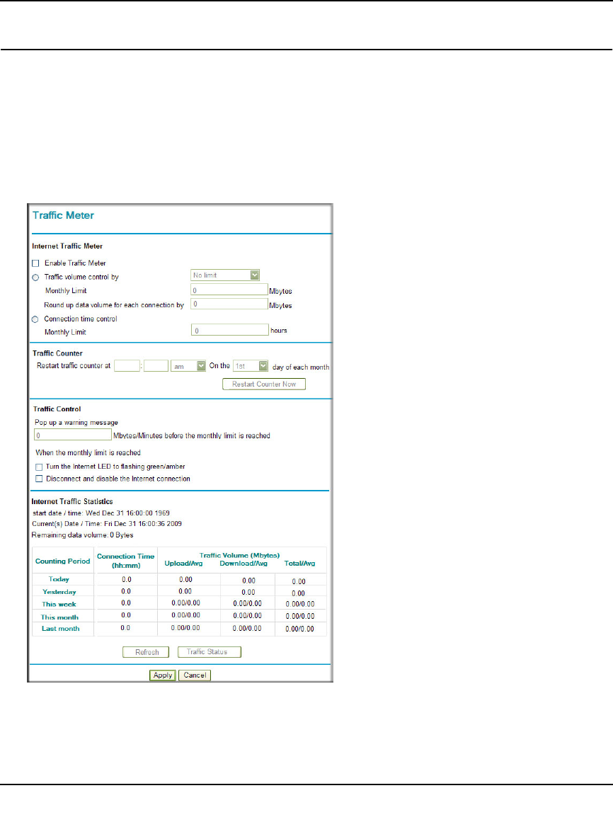Traffic Metering allows you to monitor the volume of Internet traffic passing through your router’s