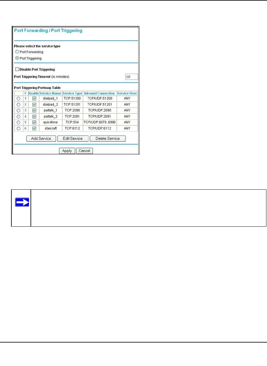 Note: If the Disable Port Triggering check box is selected after you configure port