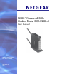 N300 Wireless ADSL2+ Modem Router DGN2200v3 Unpack Your Modem Router Your box should contain the following items: • N300 Wireless ADSL2+ Modem Router DGN2200v3 • AC power adapter (plug varies by region) • Category 5 (Cat 5) Ethernet cable • Telephone cable with RJ-11 connector • Microfilters and splitters (quantity and type vary by region) • Resource CD with NETGEAR Genie setup • Installation guide with cabling and modem router setup instructions If any parts are incorrect, missing, or damage