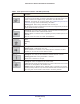 N300 Wireless ADSL2+ Modem Router DGN2200v4 Table 1. Front panel icons for buttons and LEDs (continued) Icon Description Internet • Solid green. You have an Internet connection. If this connection is dropped due to an idle time-out but the DSL connection is still present, the LED stays green. If the Internet connection is dropped for any other reason, the LED turns off. • Solid red. The Internet (IP) connection failed.