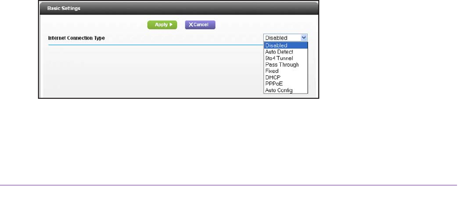 2. In the Internet Connection Type list, select the IPv6 connection type.
