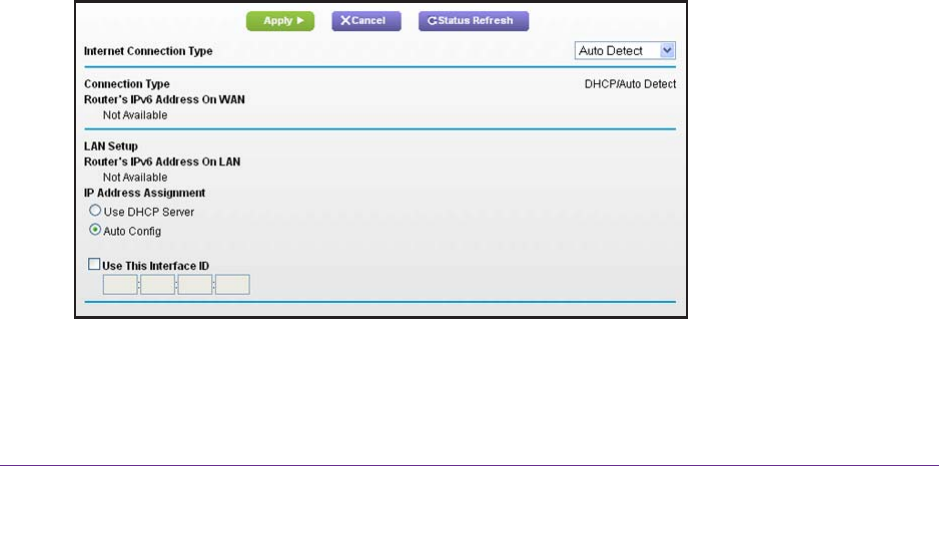 • If you are not sure, select Auto Detect so that the router detects the IPv6 type that is