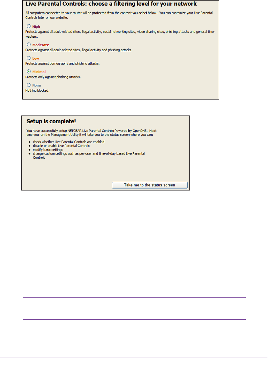 6. Select the radio button for the filtering level that you want and click Next.