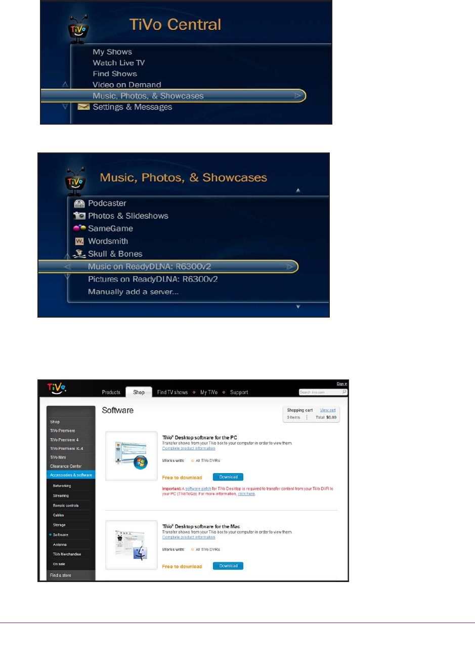 1. On the TiVo, select TiVo Central > Music, Photos, & Showcases.