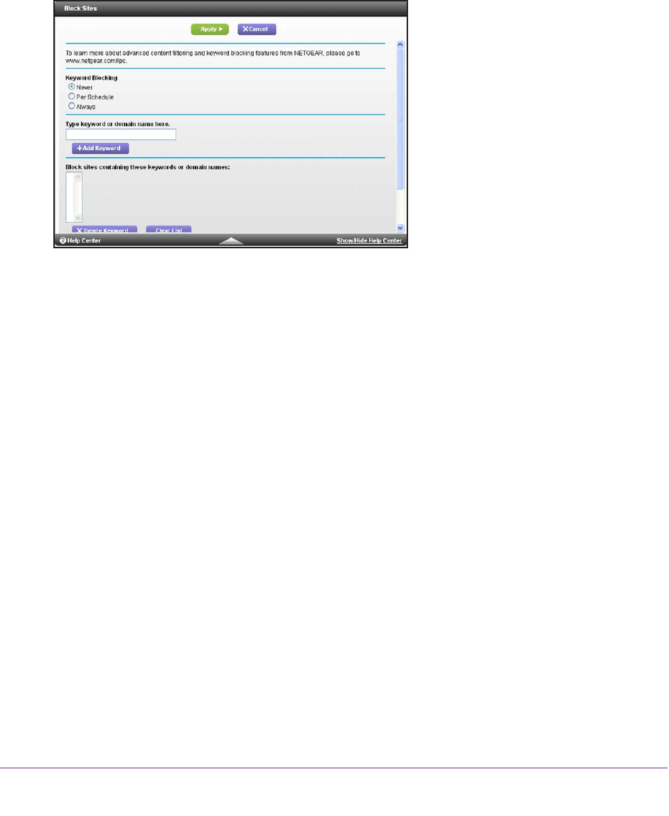 Use keyword blocking to prevent certain types of HTTP traffic from accessing your network.