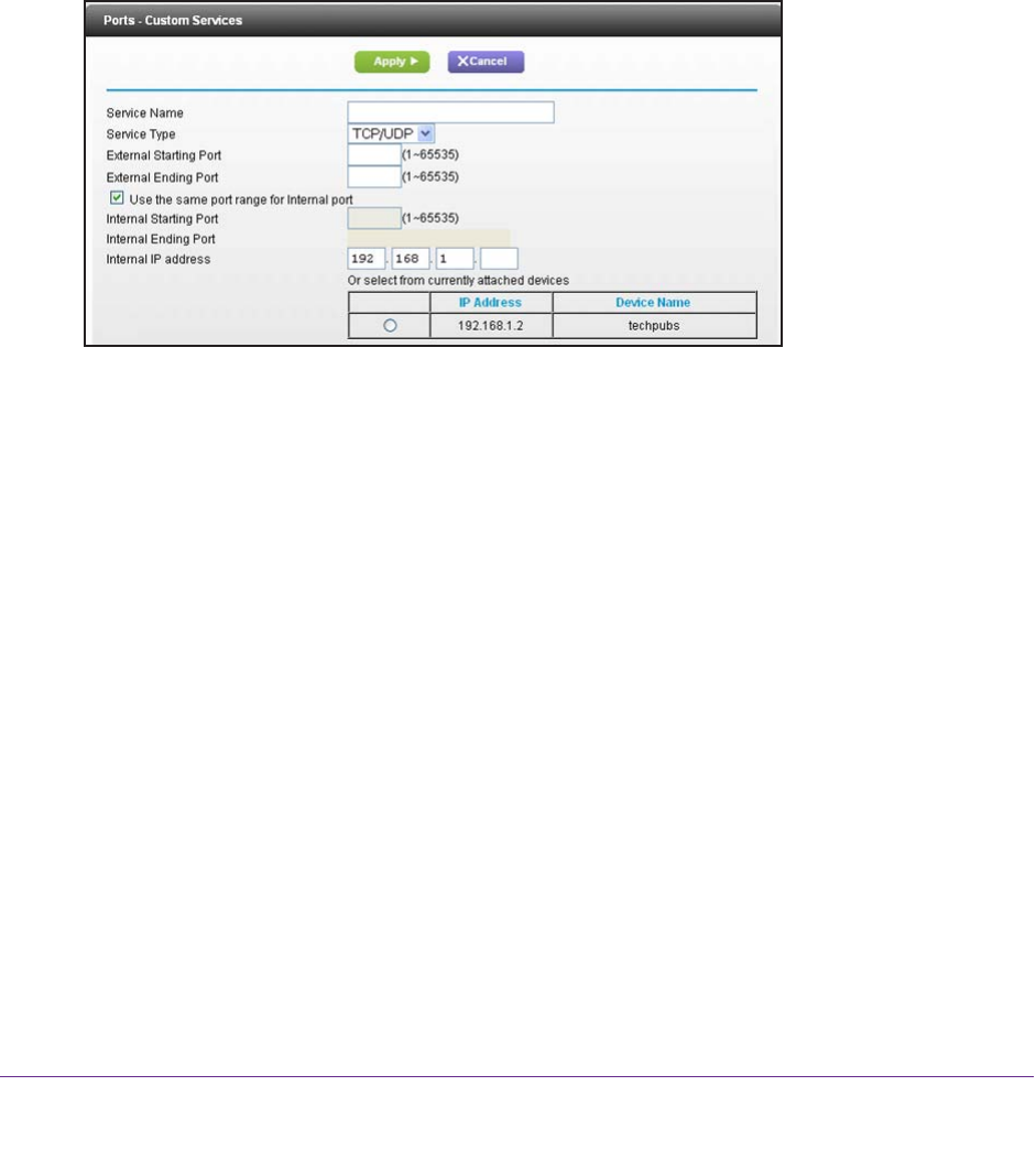 • Fill in the Internal Starting Port and Internal Ending Port fields.