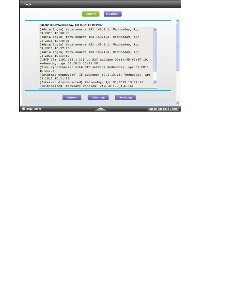 256 entries are stored in the log. Log entries appear only when keyword blocking is enabled