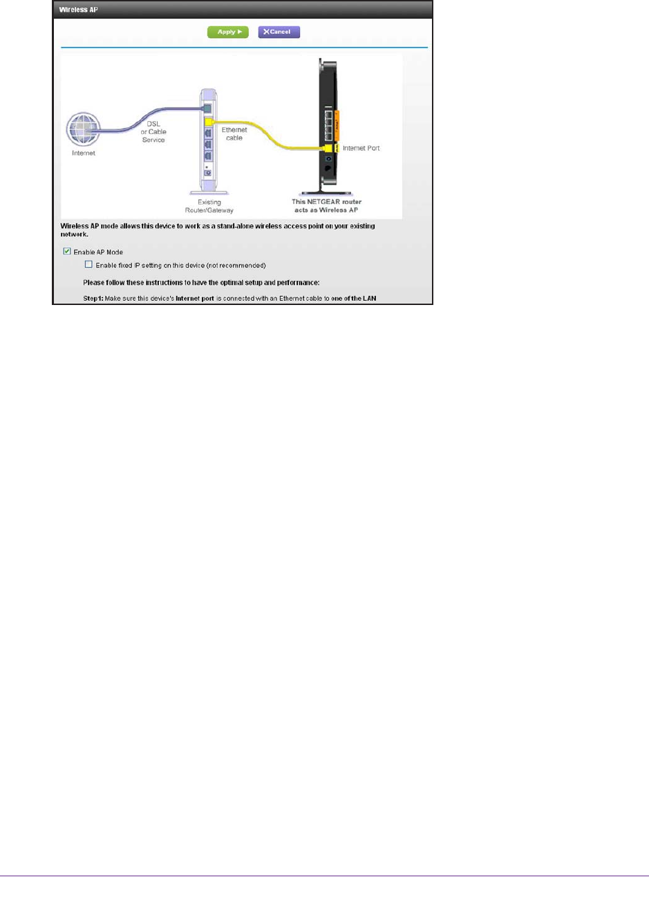 • Fixed IP address (not recommended). Use this setting if you want to manually