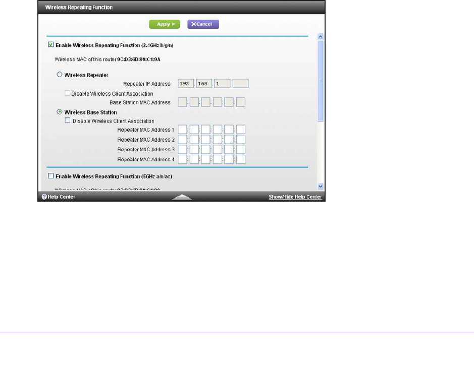 3. Select the Enable Wireless Repeating Function check box.