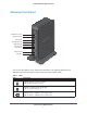 C3000 WiFi Cable Modem Router Table 1. LEDs (continued) LED Description Downstream Upstream Internet • Solid green. One or more downstream channels are locked. • Blinking green. The unit is scanning for a downstream channel. • Off. No downstream channel is locked. • Solid green. One or more upstream channels are locked. • Blinking green. The unit is scanning for an upstream channel. • Off. No upstream channel is locked. • Solid green. The modem router is online. • Blinking green.