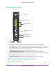 C3000 WiFi Cable Modem Router Gateway Rear Panel Reset button USB port (optional) Ethernet LAN ports Coaxial cable connector Power adapter input Power On/Off button The rear panel includes the following connections when viewed from top to bottom: • Reset button. You can return the modem router to its factory settings. Press and hold the Reset button for over 7 seconds. The modem router resets and returns to its factory settings. See Factory Default Settings on page 71. • Phone port.