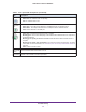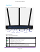 N450 Wireless Router WNR2500 Table 1. Front panel LED descriptions (continued) LED Wireless LAN ports 1–4 WPS Description • • Solid blue. The wireless radio is operating. Off. The wireless radio is off. • • • Solid green. The LAN port has detected a 100 Mbps link with an attached device. Solid amber. The LAN port has detected a 10 Mbps link with an attached device. Off. No link is detected on the LAN port. • • Solid green. Indicates that wireless security is enabled. Blinking green.