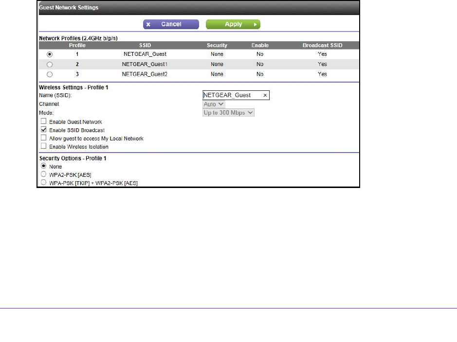 security key. You can add a guest network to each wireless network: 2.4 GHz b/g/n and