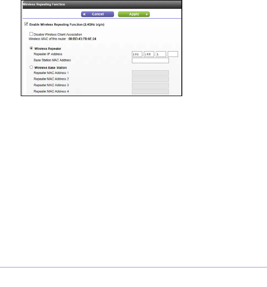 The Wireless Repeating Function screen displays. The wireless MAC address of the