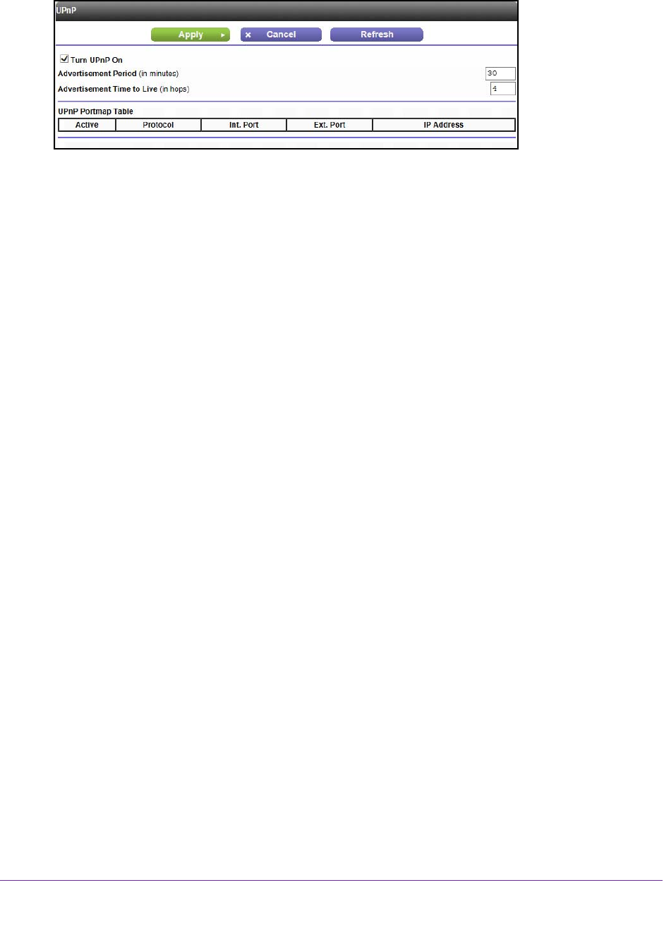 To refresh the information in the UPnP Portmap table, click the Refresh button.