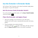 Use the Extender in Extender Mode Set the Access Point/Extender switch, place the extender, apply power, and connect it to your WiFi network. Set the Access Point/Extender Switch To use the extender in extender mode, set the Access Point/Extender switch to Extender . Place the Extender and Apply Power 1. Place your extender in the same room as your WiFi router. Proximity to the WiFi router is required only during the initial setup process. 2. Plug the extender into an electrical outlet. green.