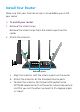 Install Your Router Make sure that your Internet service is active before you install your router. ¾¾ To install your router: 1. Remove the antenna caps. Remove the antenna caps from the antenna posts on the router. 2. Attach the antennas. Antenna posts a. Align the antennas with the antenna posts on the router. b. Attach the antennas on the threaded antenna posts. c. Position the antennas for the best WiFi performance.