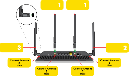 NETGEAR recommends that you position all of the antennas