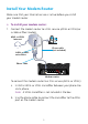 Install Your Modem Router Make sure that your Internet service is active before you install your modem router. ¾¾ To install your modem router: 1. Connect the modem router to a DSL service (ADSL or VDSL) or a cable or fiber modem. ADSL or VDSL Internet Phone cable (not included) ADSL or VDSL microfilter Phone cable Modem router To connect the modem router to a DSL service (ADSL or VDSL): a. Install an ADSL or VDSL microfilter between your phone line and a phone.